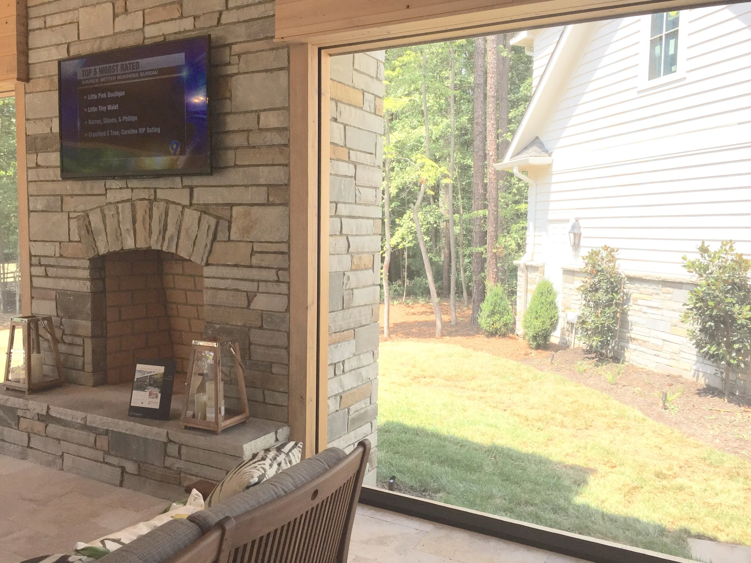 The screened porch boasted a wood burning fireplace and 4 walls of extra large screens. This designer's choice made for uninterrupted views and perfect afternoon breezes.